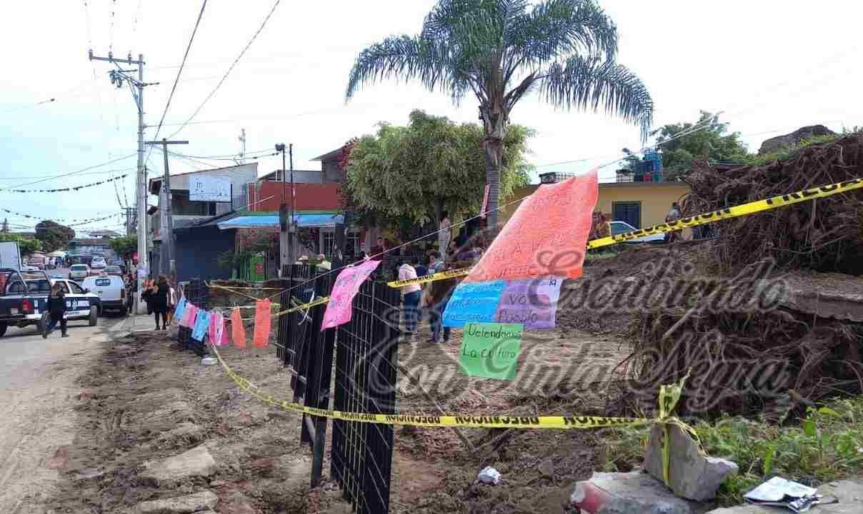 Los inconformes colocaron pancartas en las que se promulgaron a favor de la defensa de la cultura y exigieron al gobierno que suspenda el proyecto.